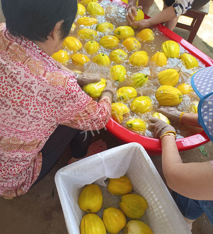 ▲ 瓜農(nóng)采收后,待洗裝箱的瓜