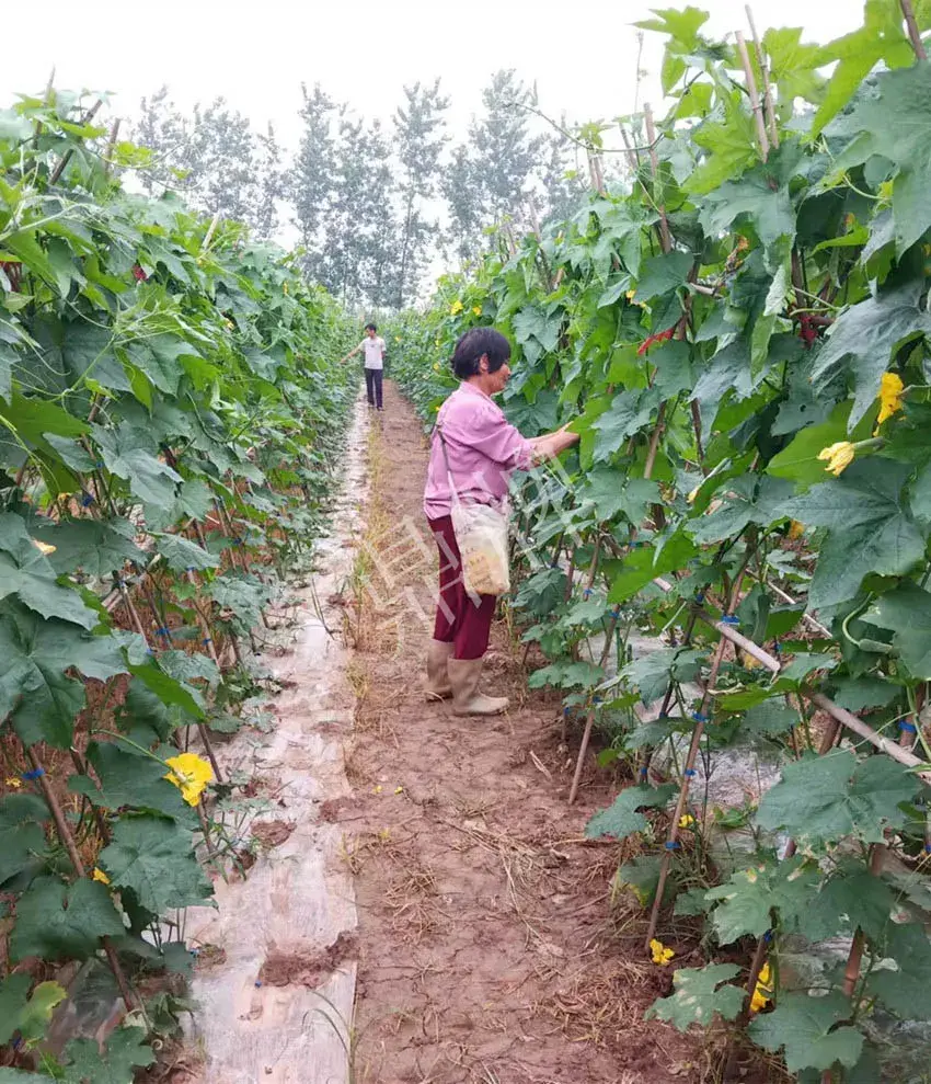 這位滿兒子繼續(xù)說:我年年只種二個品種,雖然是換了幾個地塊種植,開始只有50畝左右,這幾年都在100畝以上。每年2月底或3月初開始播種鼎牌絲瓜;7月上旬開始播種鼎牌扁豆。這樣,扁豆是利用絲瓜原有的搭架,省工省成本。我們本地有不少早春扁豆栽培面積,也是鼎牌的扁豆品種,我是相反,下半年才播種,扁豆可以一直采收到霜降。絲瓜與扁豆的搭配,就變成了我一年的生產(chǎn)安排。
