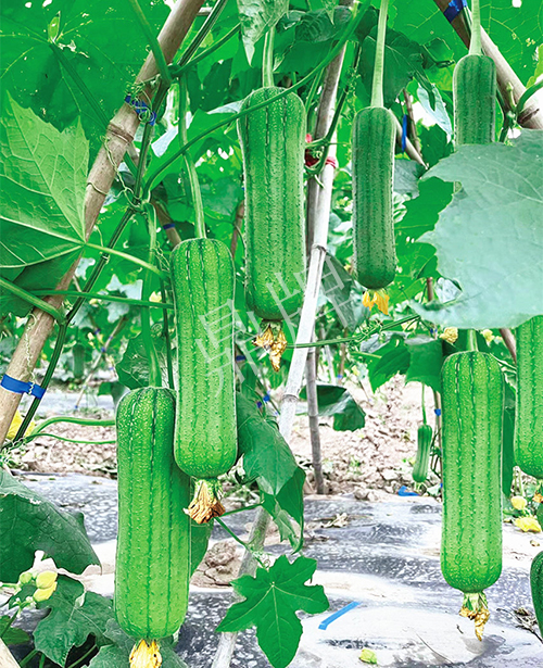 三倍體硬果絲瓜,可增產(chǎn)1倍。早熟,中棒,因坐果特多,果形、果色太美, 客戶建議改名為硬果太美。已申請國家新品種保護。用種:10~13袋/畝。